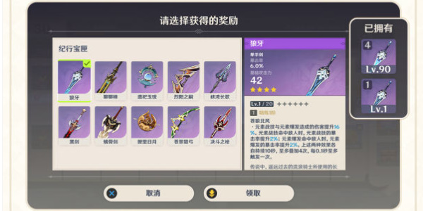 6、为了让旅行者在获取武器时更方便直观地查看已有武器的情况,在锻造、商店、纪行页面中,新增了背包中该武器数量、等级和精炼等级的展示。