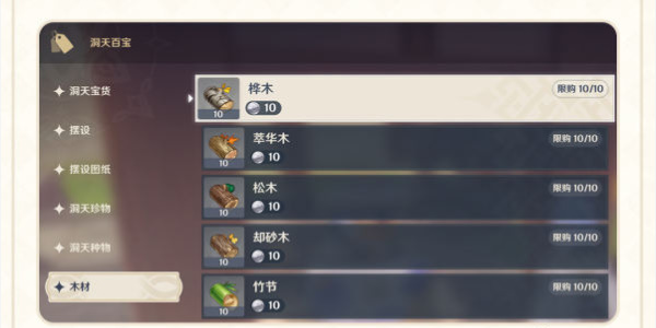 7、旅行者可以在尘歌壶商店中购买已经获取过的木材,并且,帮助旅行者获取木材的小道具「王树瑞佑」的使用冷却时间由15秒降低至5秒。