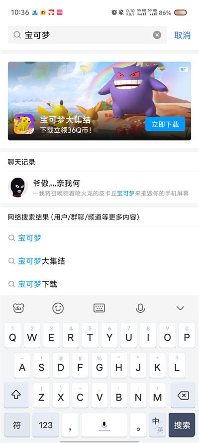 1、首先玩家在qq里面搜索一下这个宝可梦,然后就会出现这个宣传页面。