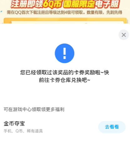 3、然后打开游戏注册之后就可以来回来这个页面,继续往下面滑动,然后可以找到这个q币的领取入口。