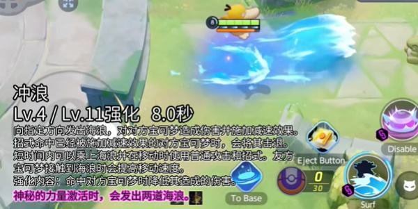 5、大招是冲浪(不对,小霞的那只不是旱鸭子吗?)这个技能是可以造成伤害并且具有减速效果。