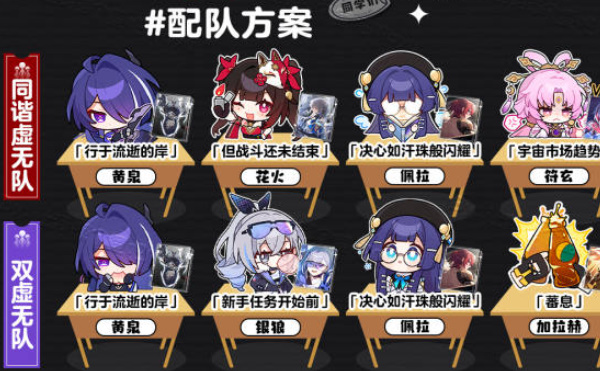 3、常见的队伍就是虚数队,这个队伍应该是目前比较强力的搭配,然后还有一个常规的队伍。