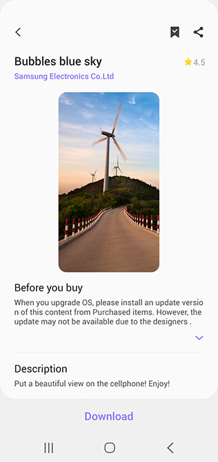 三星主题商店是一款非常好用的手机主题应用,这里不仅可以随意的搭配主题、壁纸、锁屏、熄屏时钟等各项设置,而且还可以自定义铃声、彩铃等声响,并且运行更加流畅、操作更加快捷,并且它还内建众多贴心的小工具和多种实用功能,只需简单的四步操作,就能轻松的把你喜欢的主题或者壁纸应用到桌面当中。
