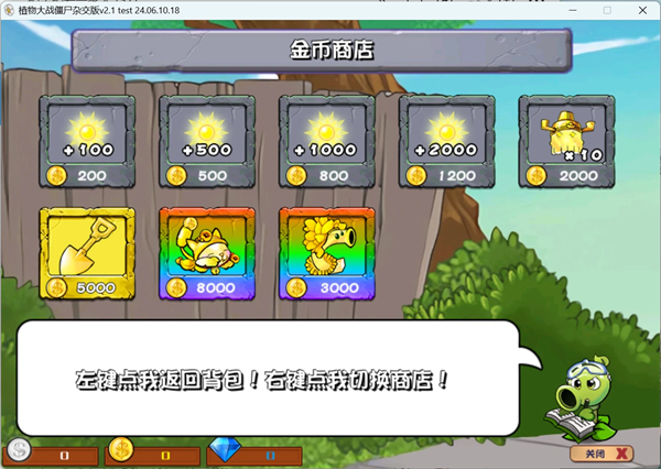 金币商店:主要为玩家增加阳光,使用金币可以在开局额外获得对应数量的阳光。