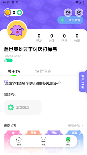 3、在我的里和编辑自己的主页,绑定关系等等。