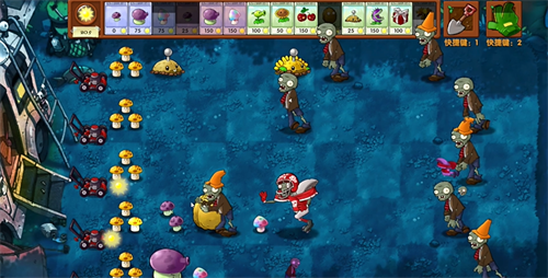 4、种植不同植物与僵尸敌人进行对抗,稳固防线守护后花园完成关卡。
