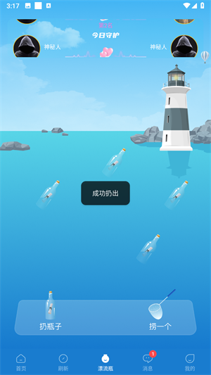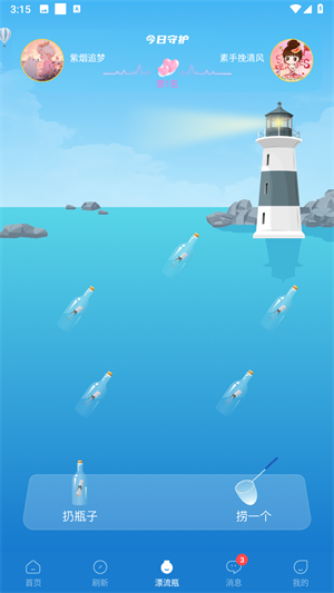1、进入漂流瓶,可以选择扔瓶子或者捞一个。