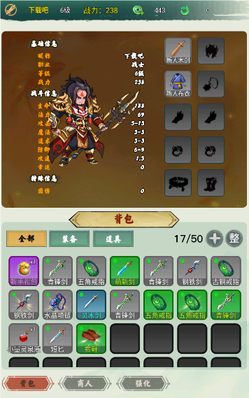 2、给自己的角色穿上对应的装备,品质越高提升战力的输出越高,通过击杀敌人掉落装备。