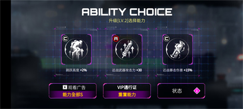 8、角色拥有等级设定,在升级后可以从三种能力中选择一种进行学习;