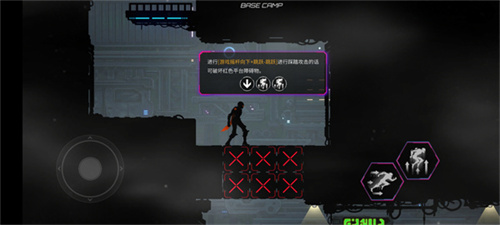 6、在蓝色平台向下跳跃则可以直接移动到下方;