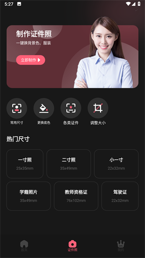2、进入证件照,可以帮助你制作证件照。