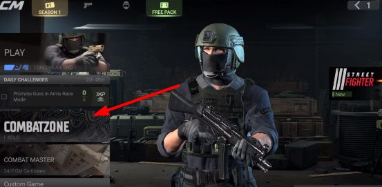 1、首先打开游戏,来到游戏的主界面,点击左下角的combatzone即可展开匹配游玩。