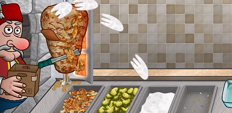 4、游戏大幅提升互动的特性,让经营更加投入,准备美味食材来开始制作沙威玛卷饼。