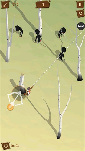 1、游戏中玩家需要通过触摸中心区域唤出弓箭,随后通过反向划动进行拉弓完成瞄准;
