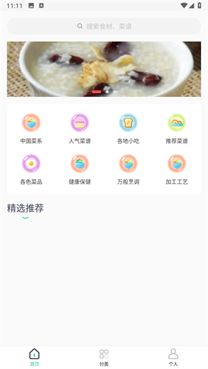 1、打开软件,直接进入首页,里面提供丰富的菜系可以选择。