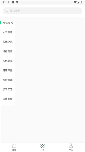 2、进入分类,可以选择你要的菜谱种类。