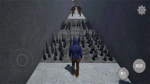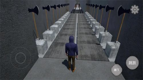 2、画面右下角拥有蹲下以及跳跃的按键供玩家点击,在相应的机关中玩家需要通过跳跃的方式规避各种危险;