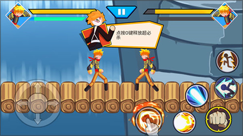 5、使用攻击命中对手后可以积攒怒气值,在怒气值满后点击对应大招即可使用;
