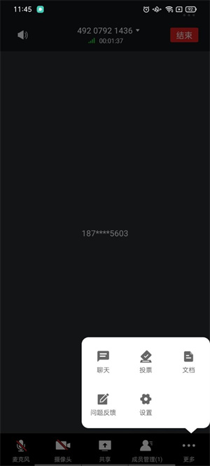 2、如果你是需要会议主持人,需要你开启会议,则点击快速会议即可开始邀请成员,并支持共享、投票、文档功能。