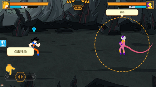 2、游戏中通过左右方向滑块即可控制角色进行移动,玩家需要根据战斗需求接近亦或是远离对手;