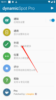 3、接着进入主页我们选择【外观】可以对灵动岛的颜色,形状进行具体的修改!