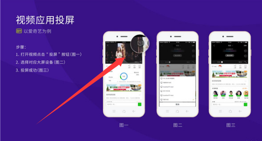 2、图中是将爱奇艺上的视频投屏到电视步骤教程。