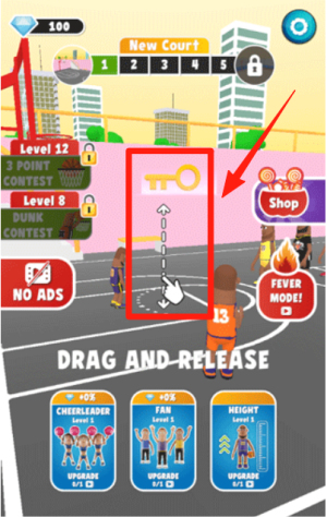 1、第一关,进入页面,点击操作,截下篮球数量每一关都有要求,每一个对手的战斗方式和投篮动作需点击调整。