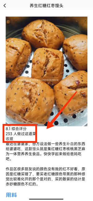 3、点开一个菜谱,可以看到评分。