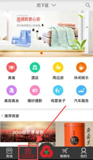 2、就可以进入软件了,社区生活可以看见附近的特色。