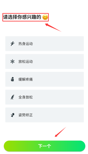 1、完成初始身体评估后,选择适合的难度级别和训练目标。