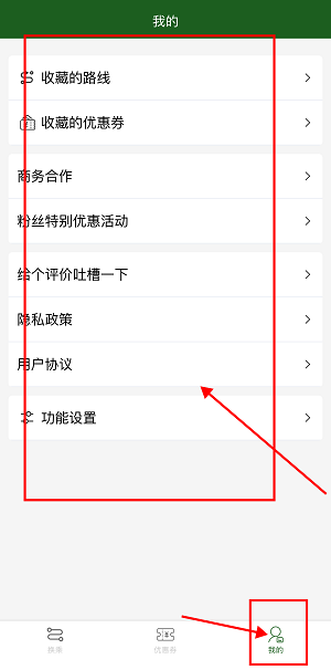 3、在我的页面中还可以查询到收藏的路线和优惠卷等信息。
