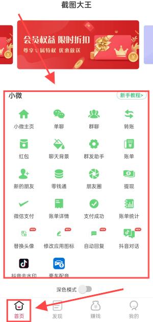 1、打开应用主界面选择所需功能模块入口,根据智能提示进行截图或导入本地图片开始编辑。