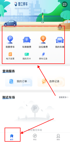 2、在首页中可以查看到我要停车、车牌缴费等服务。