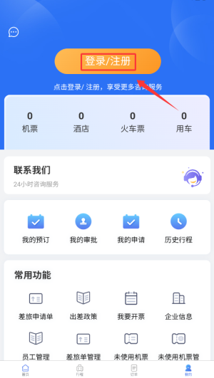 1、账号注册使用手机号或企业邮箱完成注册,完善差旅偏好设置。