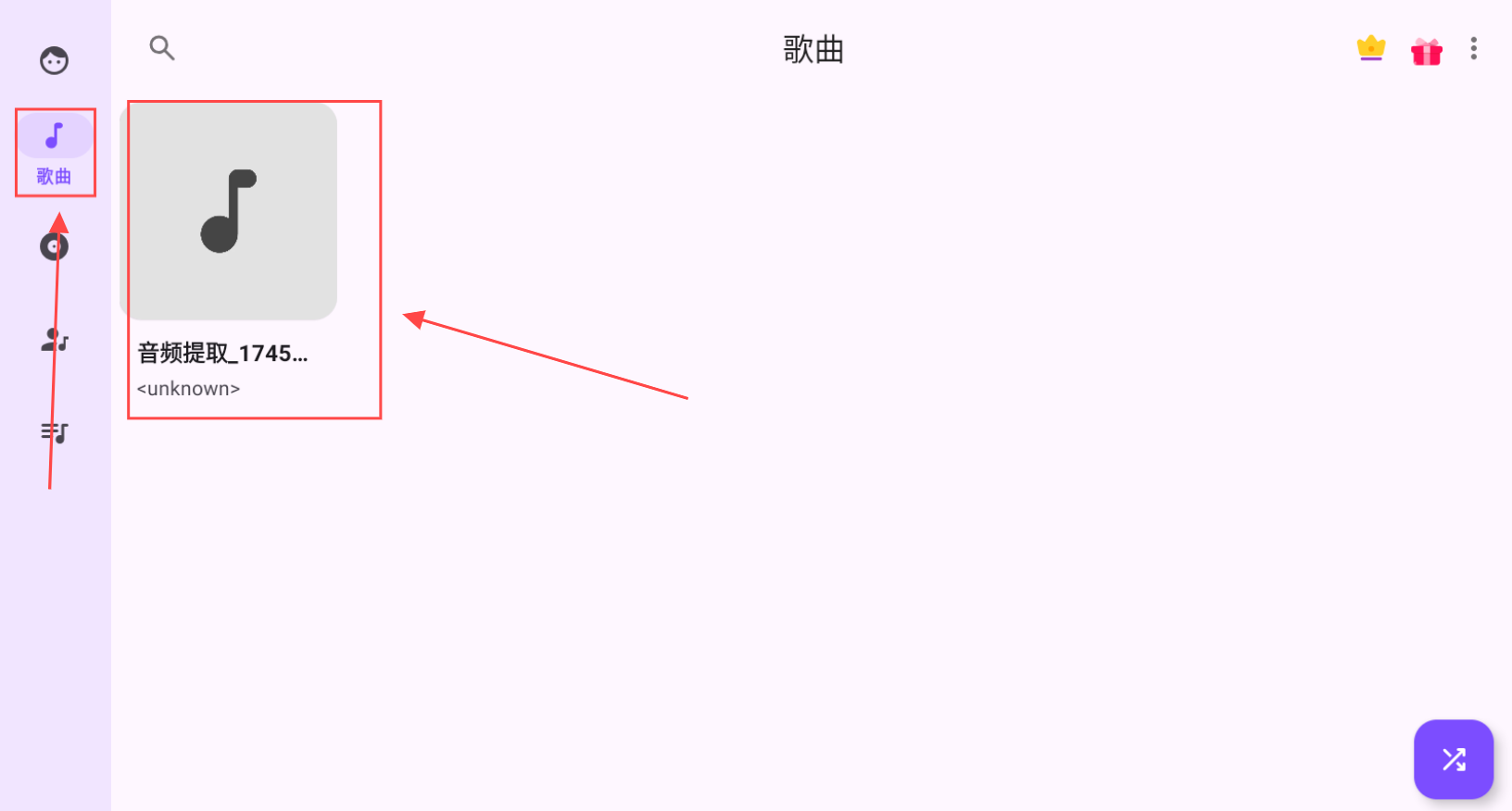 2、通过底部导航栏可快速切换不同分类视图,查找目标歌曲,搜索效率显著提升,节省用户宝贵的时间成本。