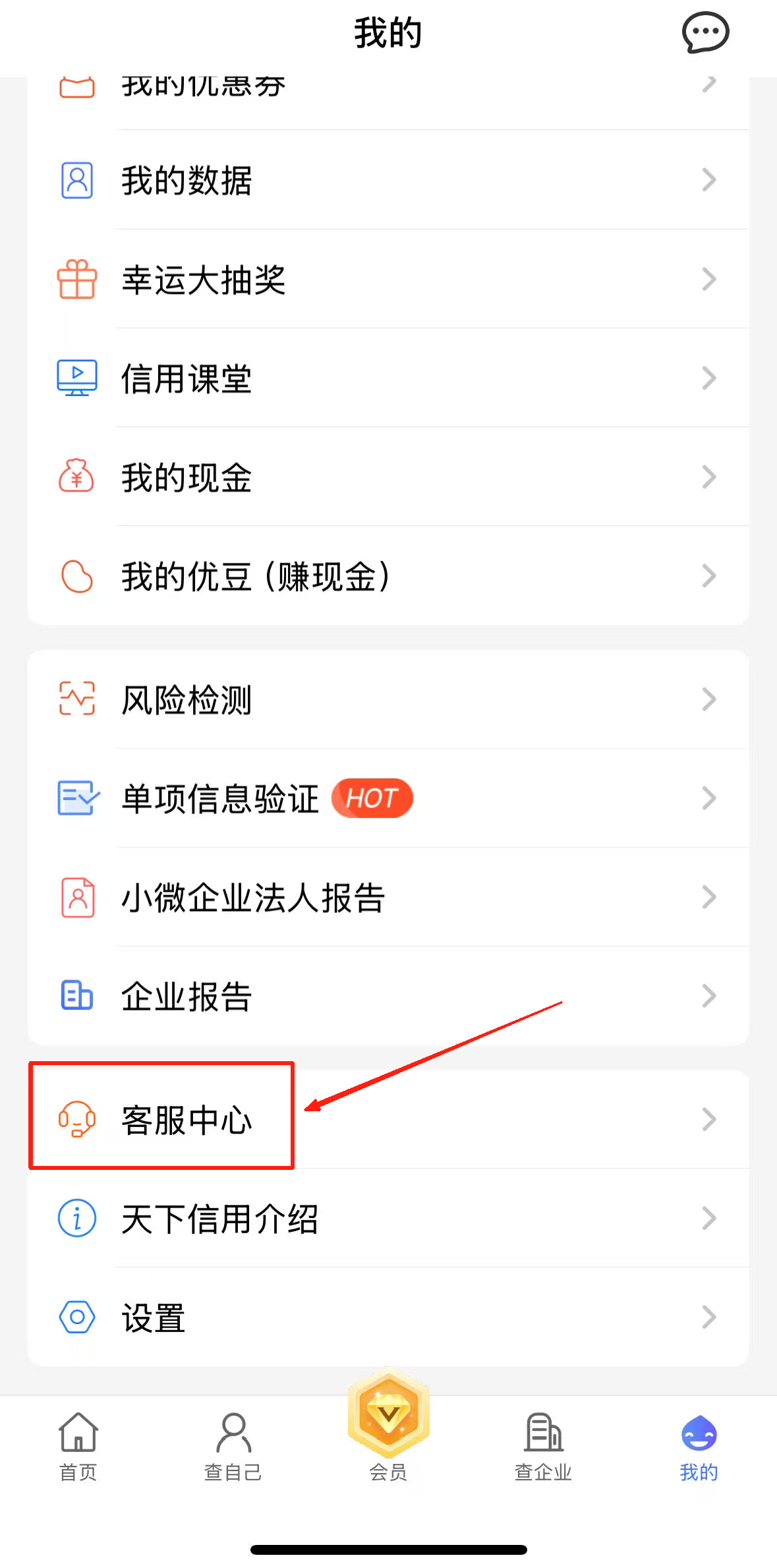1、点击查个人页面完成支付流程,即可获取他人信用数据报告。
