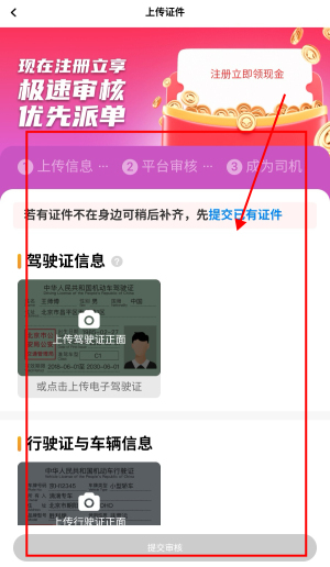 3、输入驾驶证、行驶证等信息点击“提交审核”,审核成功之后就可以加入了。