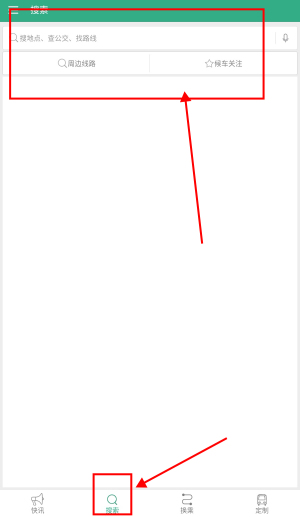 2、在搜索页面中可以查询地点、公交路线等信息。