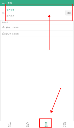 3、还可以在换乘页面中输入自己的位置和终点即可查询到换乘路线。