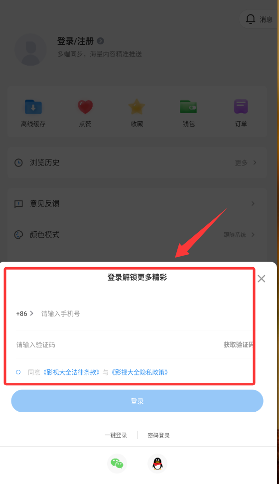 2 、注册后并登录账号可选择QQ或是微信。