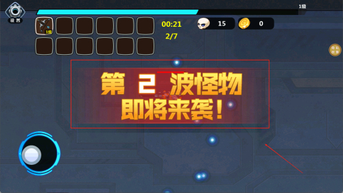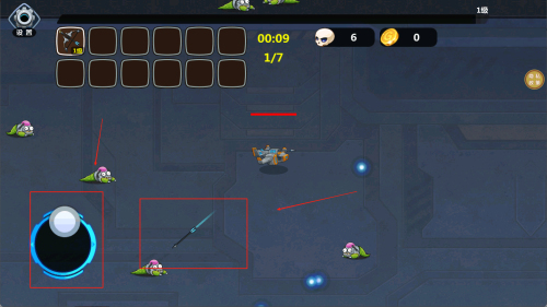 2、推动摇杆,控制飞船走位,飞船会自动攻击附近的敌人。
