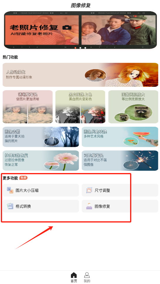 3、到主页点选自己想修复或制作的选项。