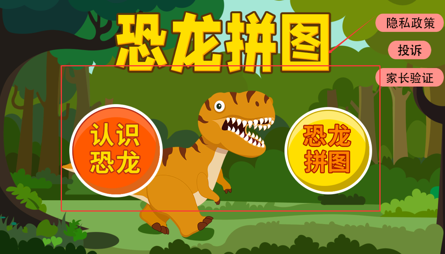 1、进入首页,点击认识恐龙和恐龙拼图,点击进入后按照流程放给宝宝听即可。