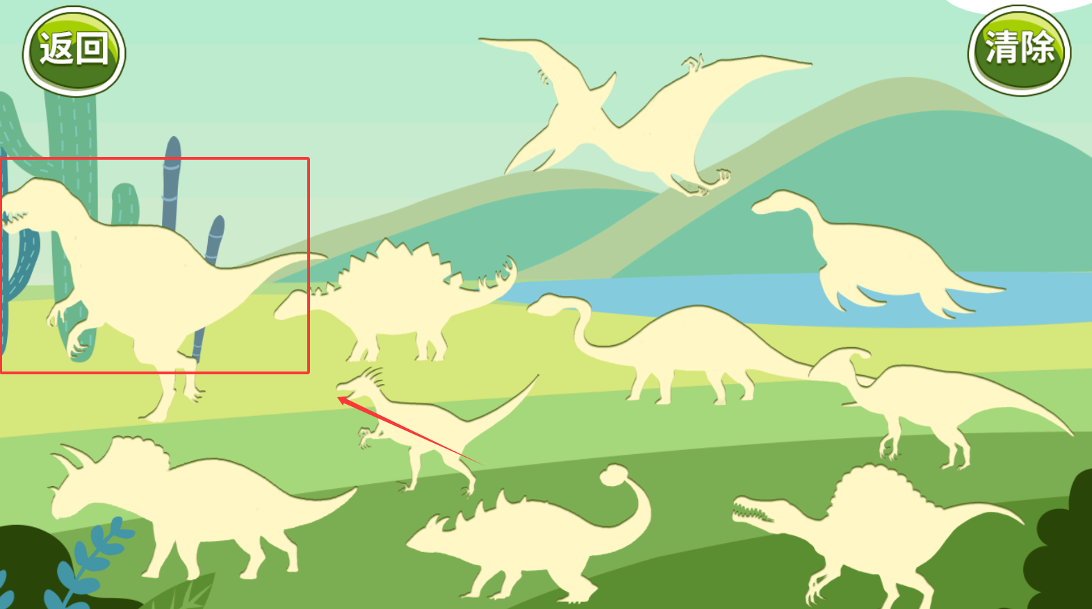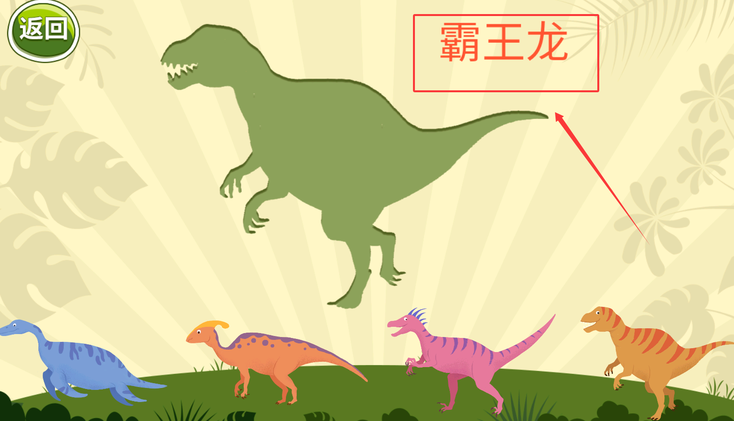 2、进入后,语音会播放恐龙品种,宝宝可以在图片中认识各类恐龙。