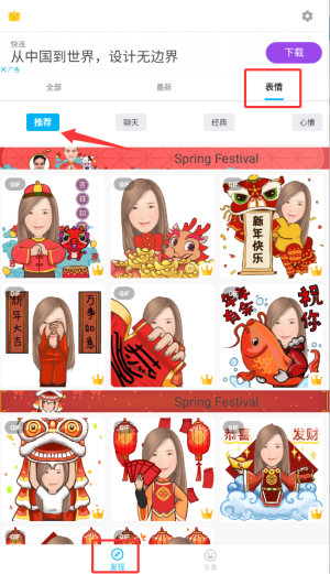 3、在编辑页面可选择"贴纸装饰"为虚拟形象添加各种趣味表情特效。