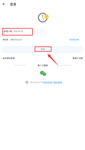2、选择页面顶部的"账号登录"选项,进入手机验证页面。