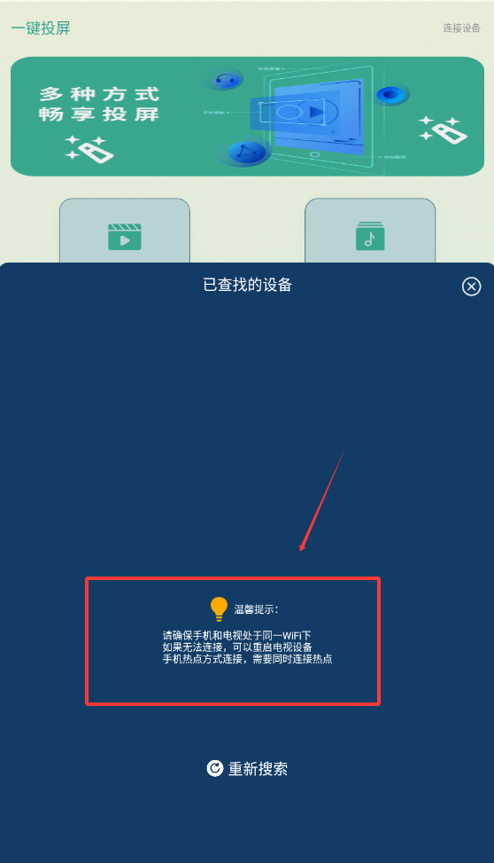3、在投屏内,可以加入您的手机型号,投屏观看您手机内的视频,照片,点击进入即可。