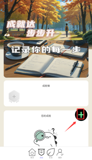 1、登录应用后,在首页选择"目标管理"功能进入成就记录页面。