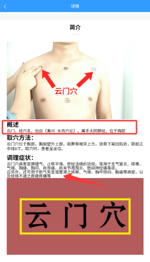 2、通过人体部位图或搜索功能查找目标穴位信息。