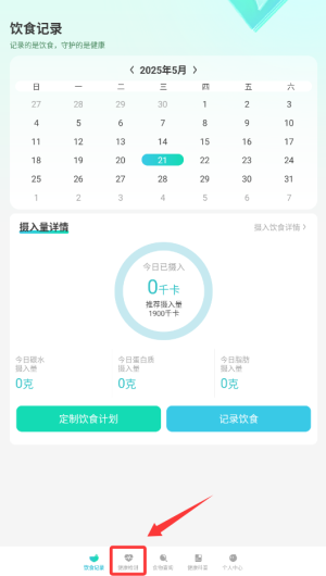 2、通过"饮食日记"记录三餐,查看实时营养缺口分析。